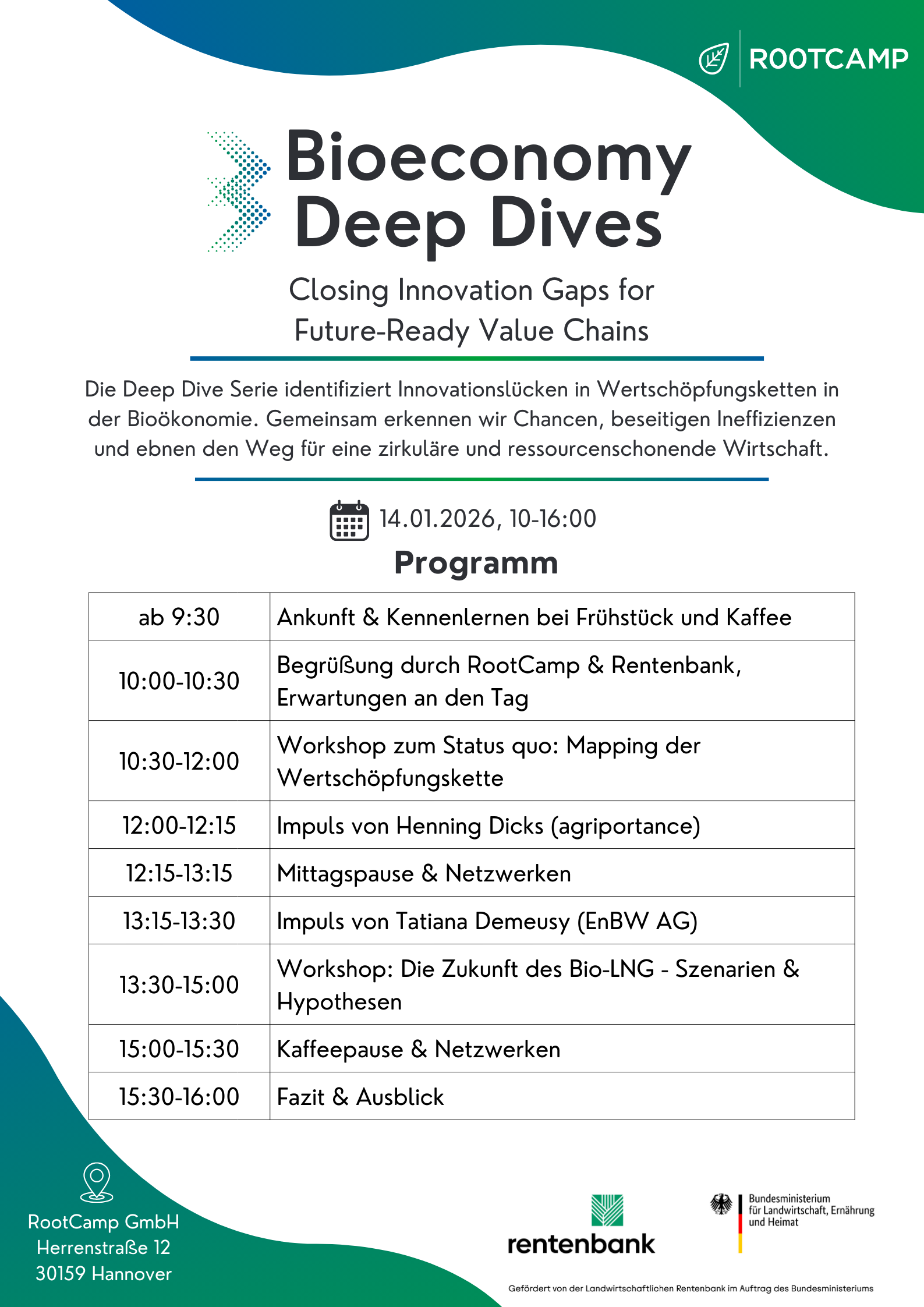 The Deep Dive series sets out to identify innovation gaps in value chains of the bioeconomy. This RootCamp project is funded by the Rentenbank and commissioned by the Federal Ministry for Agriculture, Food and Regional Identity (BMLEH). Through collaborative efforts, we pinpoint opportunities, overcome inefficiencies, and pave the way for a streamlined and circular bioeconomy.
